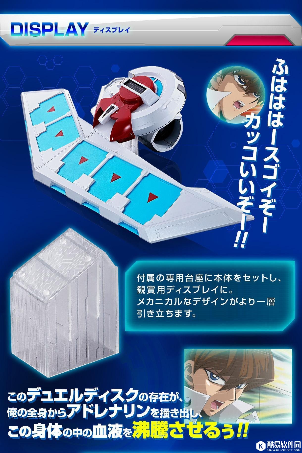 造型製作,设有怪物召唤、魔法卡、陷阱卡、场地卡等设置区都一应俱全,召唤怪兽时会有音效与发光效果。拥有电子显示血量计,并收录 40 句以上 海马瀬人