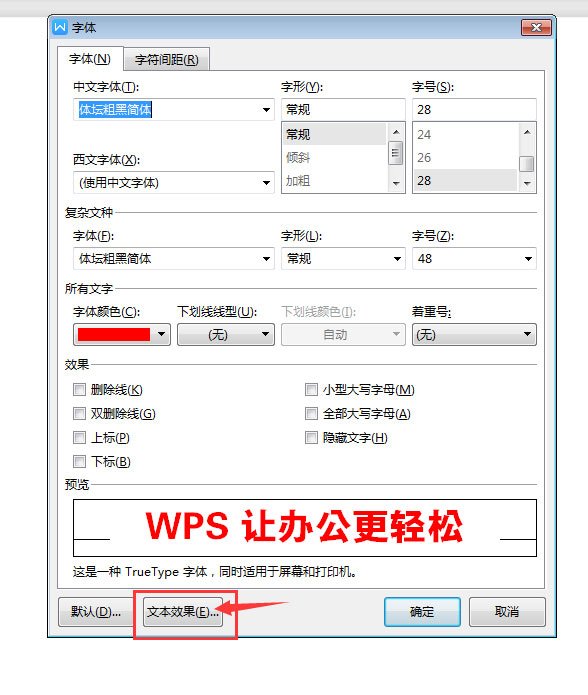 5、弹出字体对话框后,点击下面的文本效果。