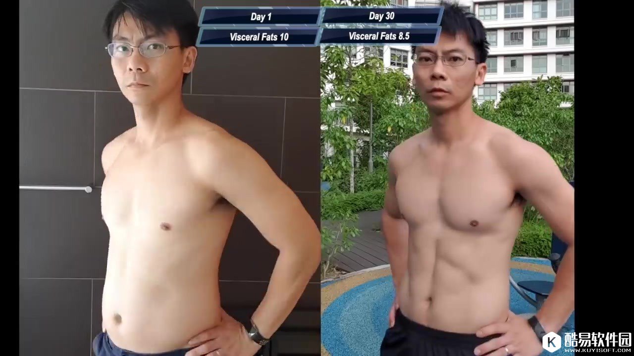 坚持到第三十天后,sean seah的确有了非常明显的改变,首先他的肚腩和排布消失了,肌理分明还拥有了健壮的腹肌和二头肌,实现了从中年油腻男到中年帅大叔的逆袭,这种变化真是惊人!
