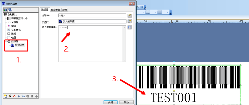双击条形码模板,弹出【条形码属性】对话框,点击【数据源】,修改模板的数据格式,