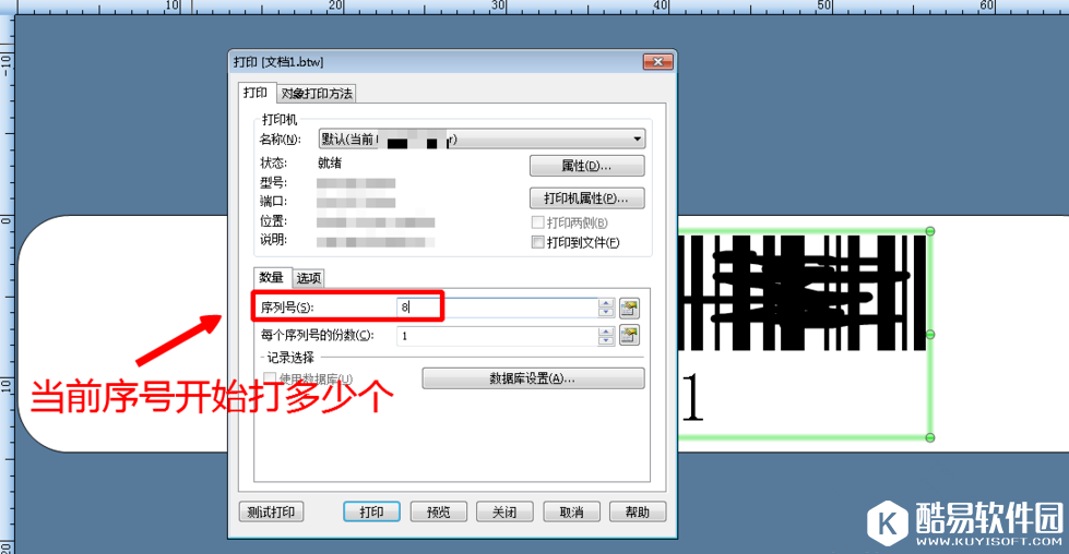 点击【打印】按钮(或者按Ctrl+P快捷键)调出打印界面,点击【数量】——【序列号】,填写当前要打印的条码数量,
