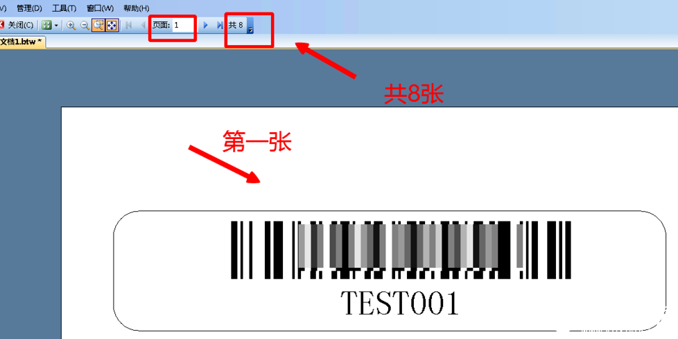 预览查看,从TEST001打印八张条码,最后一张是TEST008,成功了。
