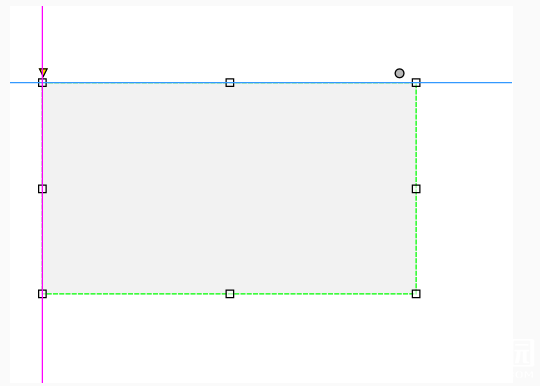 选中拖动这个矩形元件,可以看到它会自动与辅助线对齐,如图,