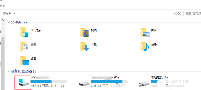 返回桌面,双击【我的电脑】,进入页面,找到系统盘(C盘),如图,