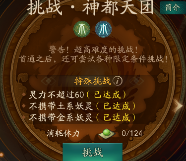 金破条件为不带土系不带金系,灵力不超过60,降妖师和变身不死,说实话,除非每个挑战本都限制SSR上场,不然确实没啥难度。当然也和策划一味复刻大司命出现之前的活动有关,当初难度完全不能跟上各种变态输出的脚步了。这个本可以用两大永动机鹿少鲲和大司命挂机过,自身妖灵比较少,也可以嫖一个大佬的带堪舆罗庚开场就能放技能大司命,自己出一个天禄,再加一个团子/白泽/鹿蜀,完全不需要闪避boss技能,反正boss伤害都很低,大司命甚至脸接河伯一次狂暴都没死,全程秒秒秒就完事了。