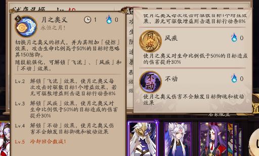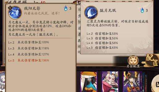 二技能满级后,泷夜叉姬的大招伤害攻击血量在50%以上的目标时忽视150点防御,以下的目标伤害提升30%,并且不会触发目标的御魂和被动。我就知道,现在输出尤其是PVP向的,没有无视这个无视那个都不好意思叫新式神了。
