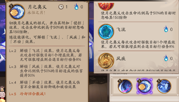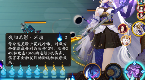 对50%血量以上或者以下的敌人攻击额外增伤,自己的大招攻击不触发御魂和被动,自己大招攻击每次攻击时都会驱散地方一个buff,如果没有buff可以驱散,则改为驱散目标8%的行动条。