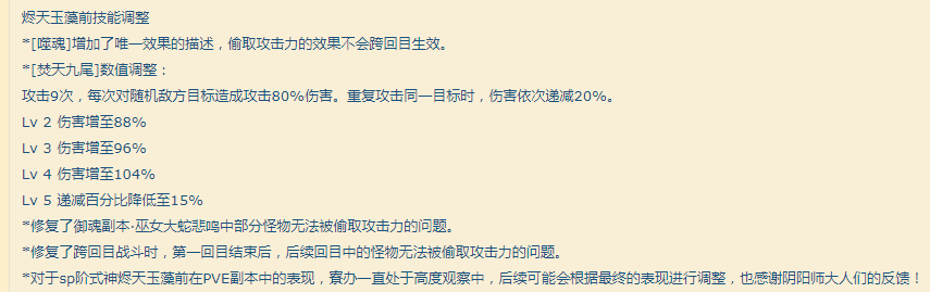 小编就知道,就烬天玉藻前对魂土目前速度冲击加上所需的御魂要求根本不高,被削弱可以说是板上钉钉的事了。果然,第一版的玉藻前也就活了,就在玩家特邀服被砍了。