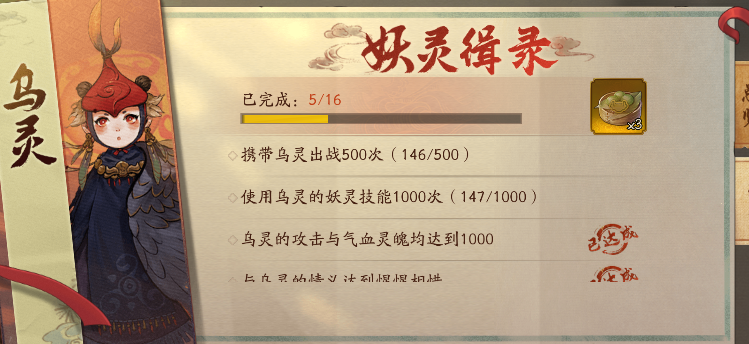 不过这16个任务其实并不好做,首先这个玩法一开始不会告诉你具体的任务是哪些,需要玩家一个个找出来触发,以及拥有乌灵才能解锁这个玩法,单纯地拥有这个妖灵也不能触发玩法。