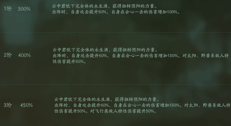 云中君被动,对减益目标的特性伤害+会心利用强克制。