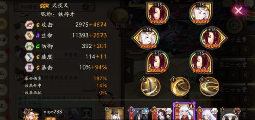 三速为针女歌姬犬,攻击尽量堆高给大舅当工具人。其中舅妈的速度要求为119+,犬夜叉和弈的要求为117+