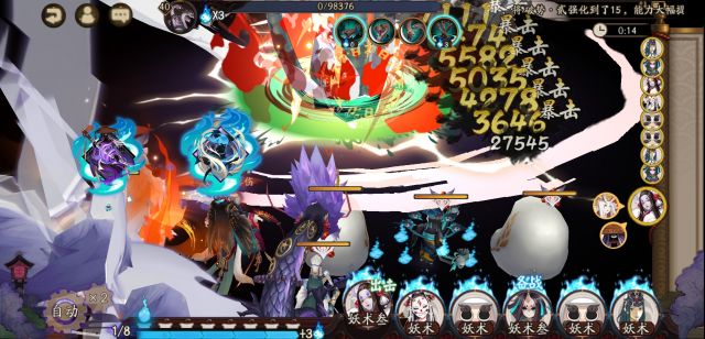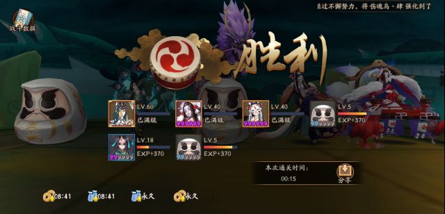 剩下的三个单位为被动+2的火灵狗粮座敷,加两个白蛋,三个狗粮均无需带输出御魂刻意堆伤害给大舅妈吸伤害当工具人,另外这里大舅妈只负责收尾没有多余的目标可以打偏,再加上不像猫掌柜看针女的脸色,因此这个时间非常稳定。
