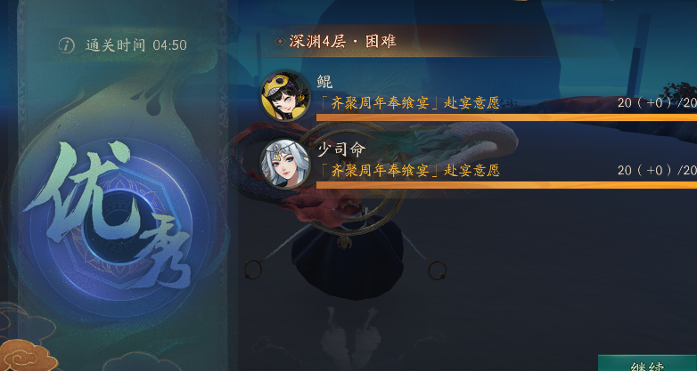 神都夜行录本周的从极之渊正式开放了深渊四层,boss为月系的少司命,一看就是为刚出的日系强克制输出烛龙开路,事实上如果不是为了爬塔竞速的话,普通的双鹿大司命就能过了。