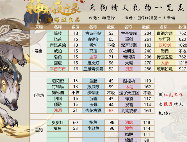 神都夜行录是神都夜行录周年庆的第三只妖灵,也是国庆活动妖灵,第二种异系妖灵,可骑乘。至于送礼方面有什么特殊喜好,可以参考下面这张舔狗情义表:
