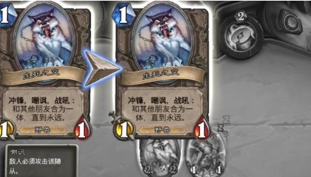 Emmmm……1费冲锋嘲讽确实不错,不过战吼效果看起来就非常迷了,战吼是和其他的朋友合为一体,直到永远。嗯?怎么透露出一股哲学的气息?一开始小编看到这个效果的时候第一时间想到的就是这张虚空恐魔。