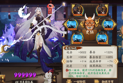 操作方面,开场一琴拉追月,二琴拉晴明开星,之后标记茶几挂机即可,面板合格的玩家主要是赌灯姐给的明灯和妖琴的招财保证不断火,增伤倒是其次。