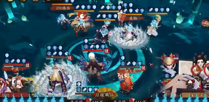 战斗中四下皆你(背后打手为前中速之光招财速度最慢的百鬼之主不如眠去)实际速度为双慢,鬼切配置为不带蚌精开场的地藏切。