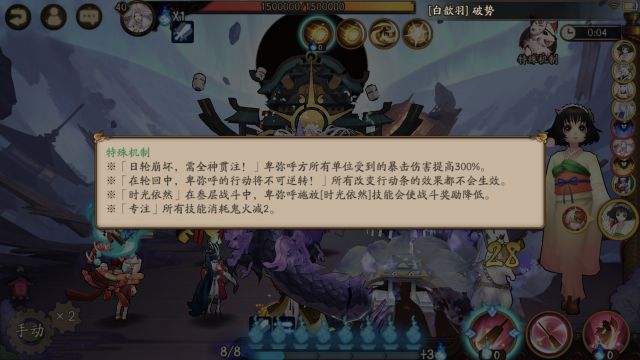 这个副本里所有拉条和推条效果都会失效,同时boss最多只能行动两次,第三次出手时我方最后获得御魂奖励被降低。