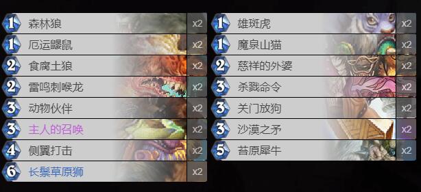 炉石传说野兽猎卡组分享。这套野兽猎卡组可以说是物美价廉,非常适合平民玩家哪来上分,而且卡组强度有保障,可以在天梯中打出一个好成绩,接下来一起来看看这套卡组的构筑吧。