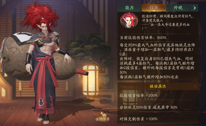 神都夜行录联动的阴阳师式神酒吞童子是一个水系多段输出,阿织也是真的不容易,这么久了终于有新的“儿子”了。