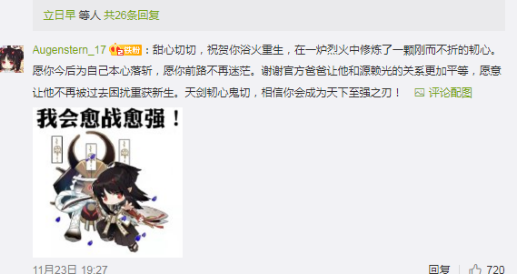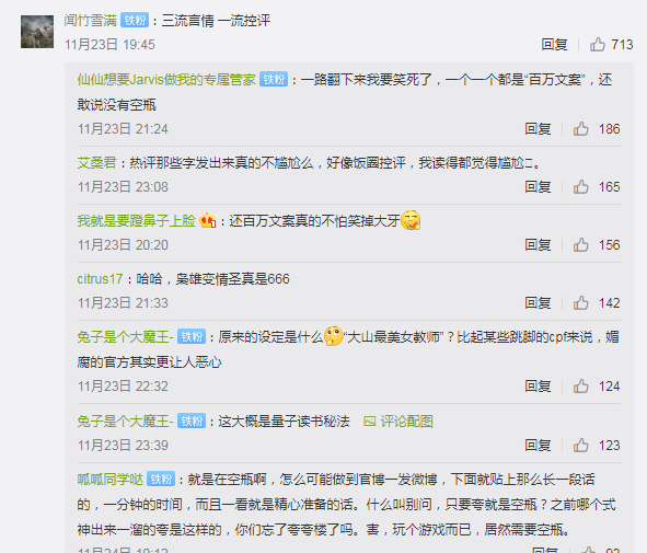 26分发布的微博。27分就打出了这么长的一段话,热评了甚至没有平时脆皮肤求加强的日经
