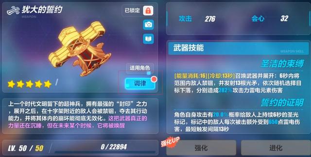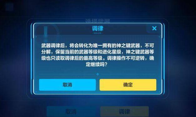 2、特别的,某些神之键如3.6版本刚刚推出的约束之键(十字架形态-犹大的誓约,十字架形态-樱花的誓约),由于其目前形态对应的武器,均存在有多把相同武器的可能性,所以需要先在背包里面找到它,点击查看武器详情,对其进行调律使其解除限制成为神之键。
