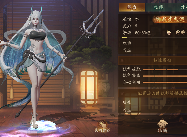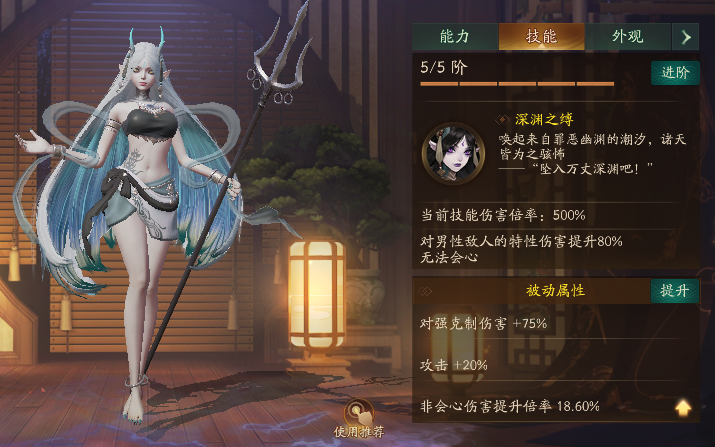 技能也蛮有意思的,又是一个对特定属性(男性)妖灵增伤的输出妖灵: