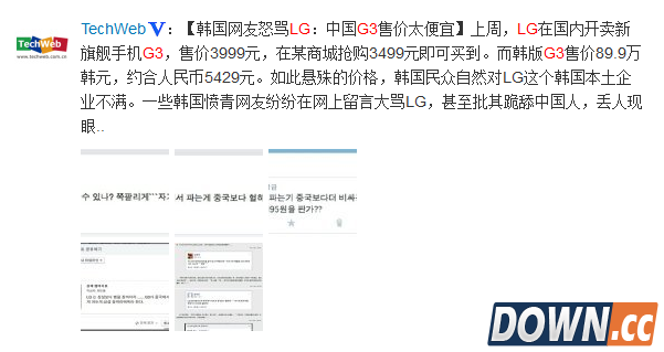 例如,有韩国网友说,“丢人现眼一下吧……谁TM有中国版的购买渠道啊,求代购~感觉有点像去中国整容,太扯了……”。还有韩国人这么说,“为了讨好中国人,把我们都是韩国的身份都忘了,你拍着良心告诉大家,G3为什么在中国卖这么便宜,而在本土卖这么贵。”