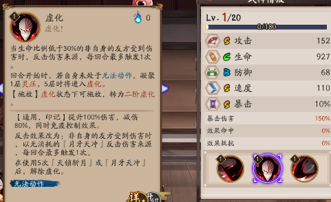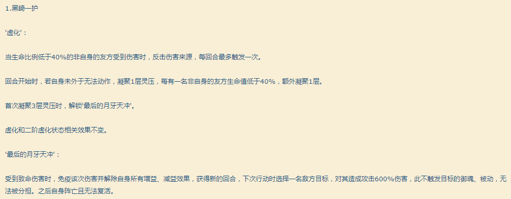 首先是一阶虚化的改动,由30%以下血量才反击,变为了40%就可以反击。
