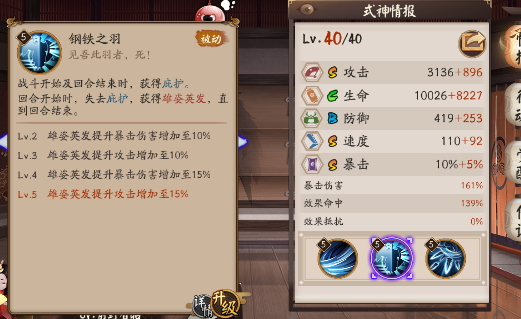 原来大天狗的被动钢铁之羽是开场提升15%的暴伤和攻击