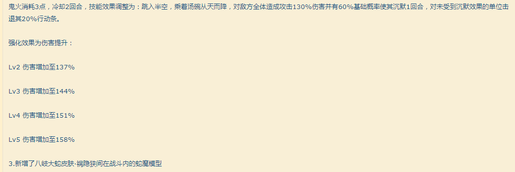 然后回到正题来说说下孟婆的加强,远古老式神加强怎么说都是好事,而且这次加强也并不鸡肋