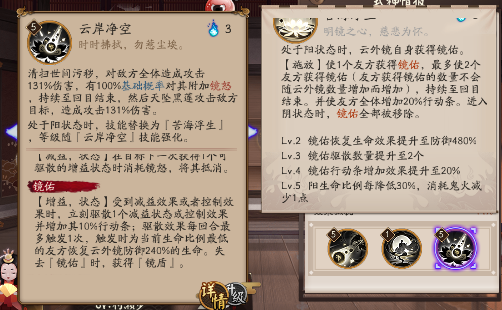要克制驱散镜子的方法也十分简单,我方带一个进攻性驱散,即可以驱散对面增益的式神就行了。因为负责驱散的镜佑是一个可以被驱散的buff,说到进攻性驱散,很多人的第一印象是影后雨女。