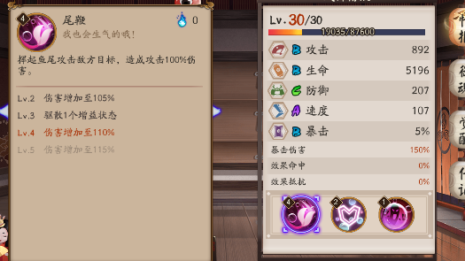 而鲤鱼精的三技能是一个100%基础命中的单体控制,对于辅助式神,一般都是稳定两回合的控制,因此如果对面选择可双驱散,鲤鱼精还可以开大招控一个对面的数珠或者驴妈。