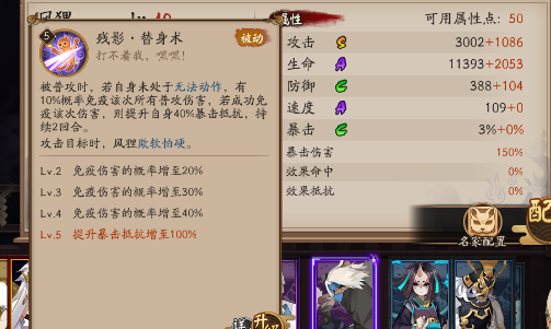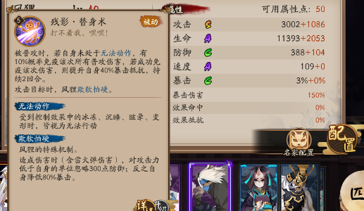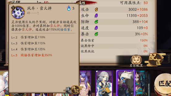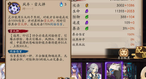 雷火弹引爆后风狸被动无视防御效果提升50点,最高提升300点,也就是最高无视敌人600点防御,当然,说到高防御而且低攻击力的代表,还有一个就是白镜了(速防防云外镜),问题是雷火弹目标看起来只有大招能叠啊,需要六回合叠满??也太慢热了,因此风狸看出来实在不像化鲸久次良这种新SR有改变环境的强度。