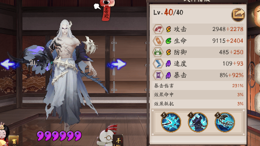 然后再来看看久次良,基础攻击力,2948,就算双方都带了速度,风狸一般情况下攻击力还是比久次良攻击要高的。