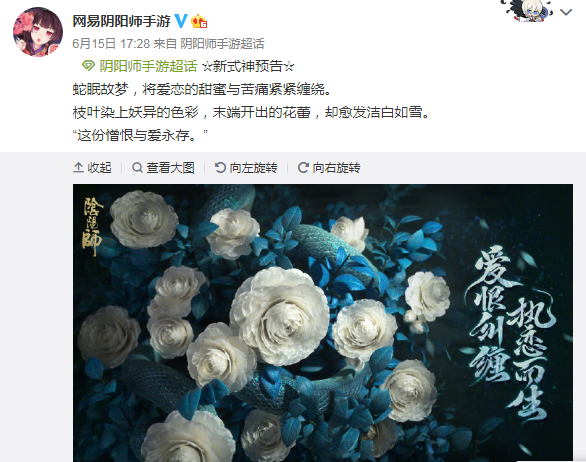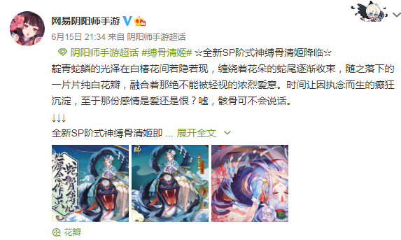 虽然游戏中和蛇相关的有两位式神——八岐大蛇和清姬,但是这个配图,这个文案,SP清姬无疑了。