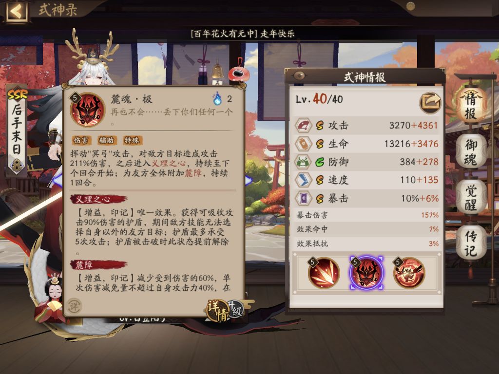 四火大招技能升级效果变为纯粹的伤害提升,同时根据铃鹿御前的血量比例,降低火耗。
