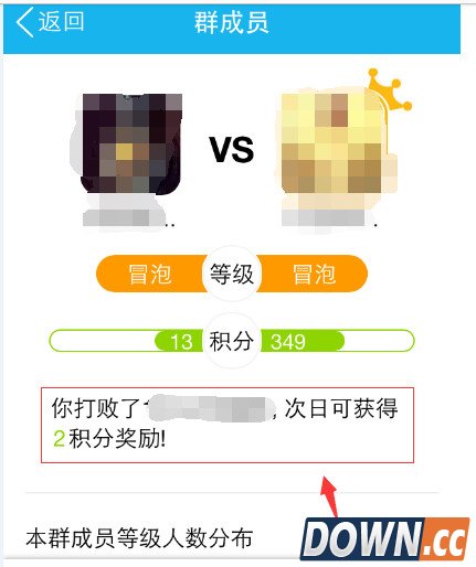 3、第三个得分要点是,在手机QQ和其他群友PK,每天最多可以拿下5分。点击群友头像或者头衔就能进如pk页面,赢了第二天将会给你加上积分