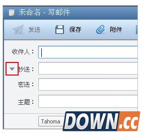 1、在foxmail写邮件界面直接可以看到邮件抄送的填写框,点击抄送旁边的三角形即可显示暗送的填写入口