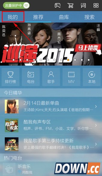 1.点击手机酷我音乐的左上角【我的】