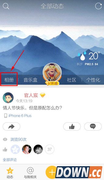 1.进入手机QQ空间,点击头像左侧的【相册】