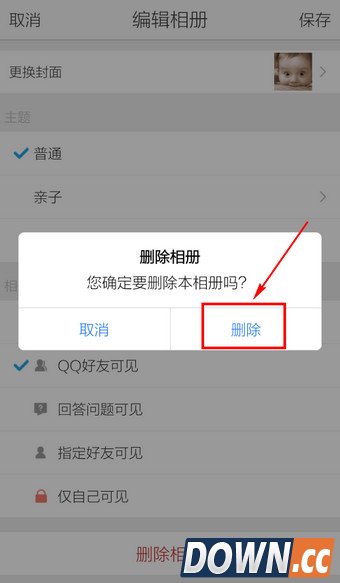 5.滑动至底部,点击【删除相册】