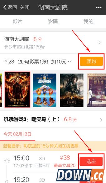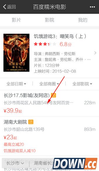 6.以《饥饿游戏》为例进入,选择一家电影院