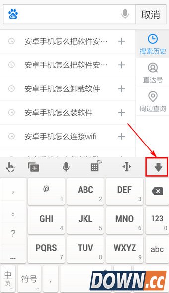 2.进入搜索页面,将输入法收起来