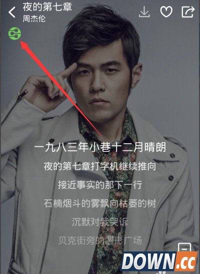 3、我们点击播放手机的酷狗音乐的随意一首歌,并且进入歌词写真页面,就可以看到在歌词写真页面有一个如图所示的按钮
