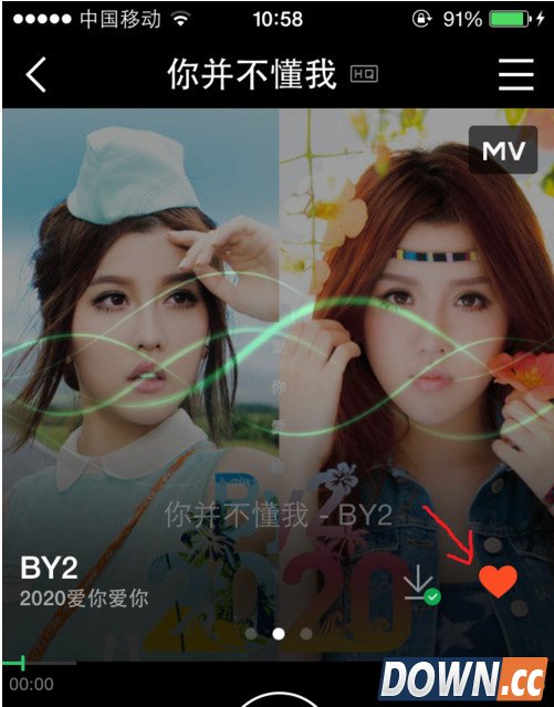 3、在安装手机APP后,也可以试听歌曲,发现喜欢的也可以直接标记为我喜欢,收藏歌曲,不过需要先登陆QQ号