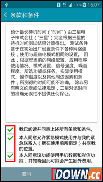 5.点击【超级省电模式】右侧滑块,在阅读“条款和条件”后,勾选所有复选框,然后点击【确定】。