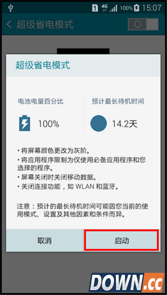 6.阅读超级省电模式注意后,点击【启动】即可。