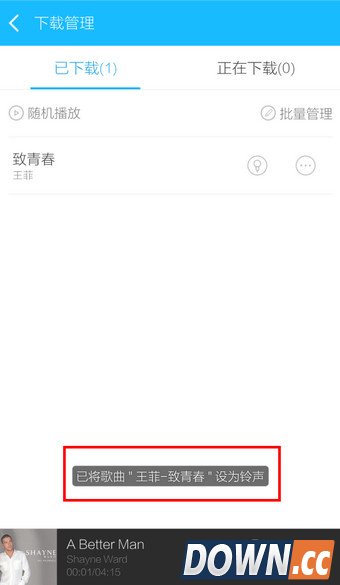 4.当前歌曲设置铃声成功