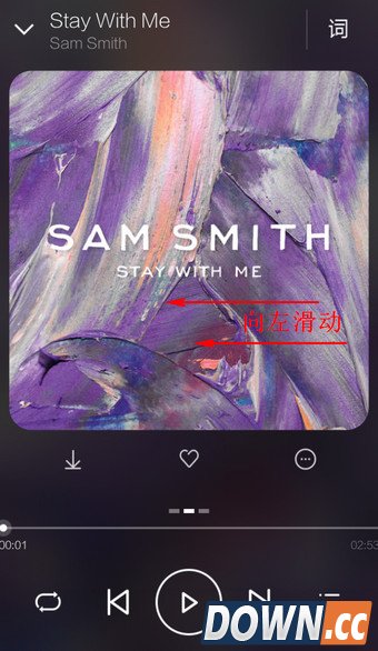 2.方法一:向左滑动专辑封面